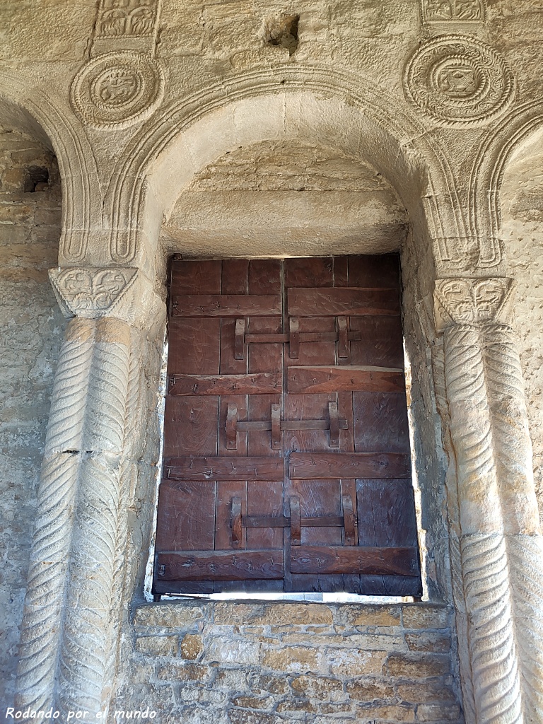 Del edificio original solo se conserva una parte, ya que en el siglo XI hubo un derrumbe que lo destruyó parcialmente. Lo primero que nos llama la atención son las preciosas celosías de piedra tallada que decoran las ventanas, una reminiscencia del arte visigodo. En el interior del templo se conservan algunos de los frescos de las paredes, pero lo más destacado se encuentra en el pórtico de entrada. Las jambas, formadas por dos grandes bloques de piedra, están decoradas con unos delicados grabados que son una verdadera obra de arte y se conservan en perfecto estado.